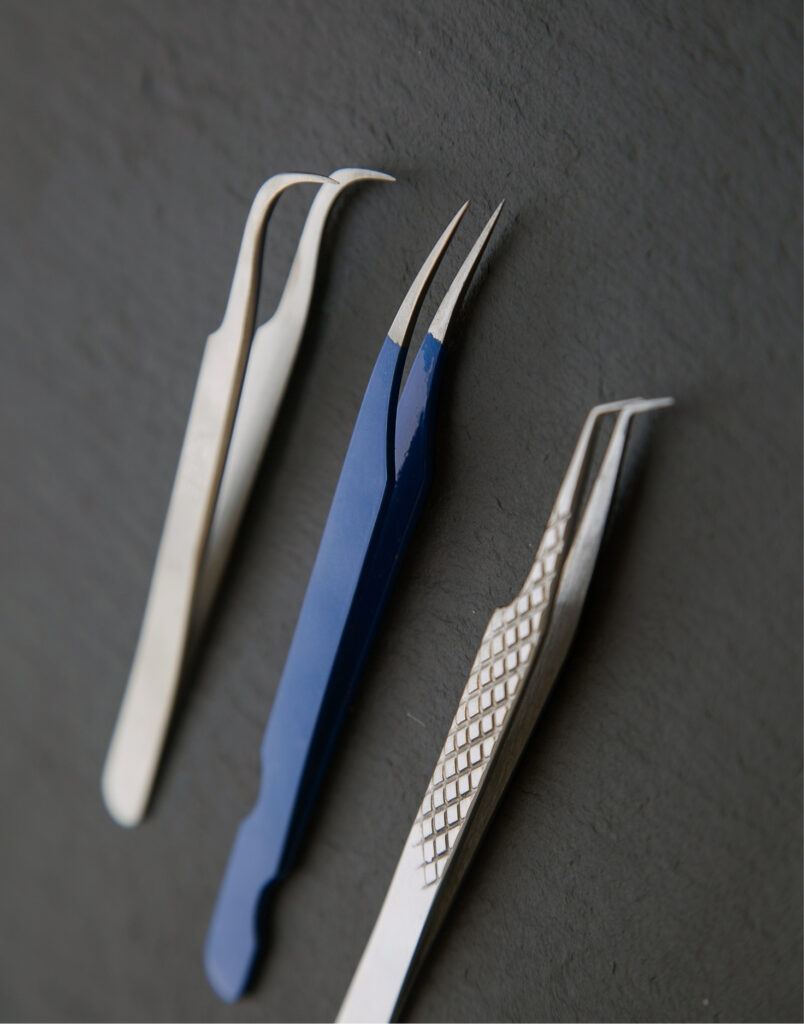 Precision engineered tweezers for professional eyelash extension work Surgical grade stainless steel for hygiene strength and durability Perfect grip and fine tip alignment for classic volume and isolation lashes